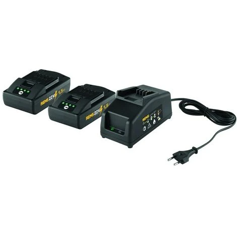 Rems Akku Power Pak 22V 9,0Ah inkl. 2Akku 9,0Ah und 1 Ladegerät 2 Stück Akkus Li-Ion 21,6 V, 9,0 Ah, Schnellladegerät Li-Ion 230 V, 90 W.